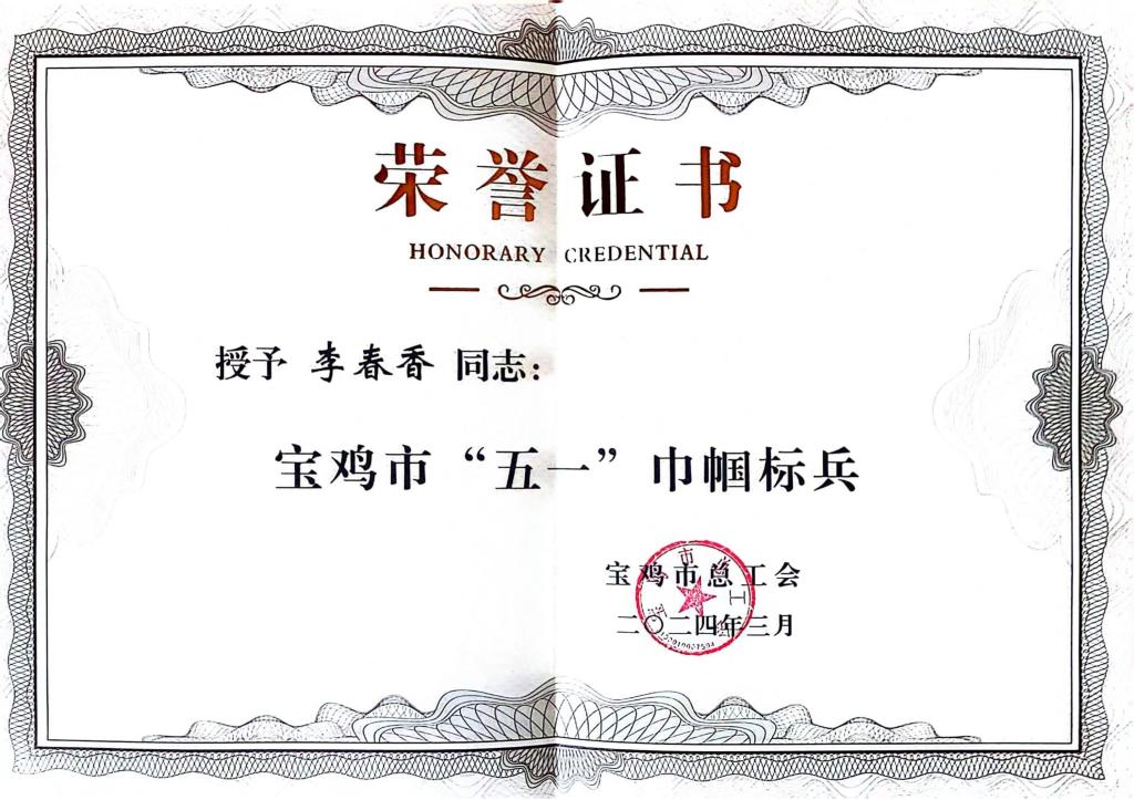 紮根(gēn)一線 風華無限||一起草 www.17c.com股份李春香喜獲寶雞市“五一巾幗標兵”榮譽稱號