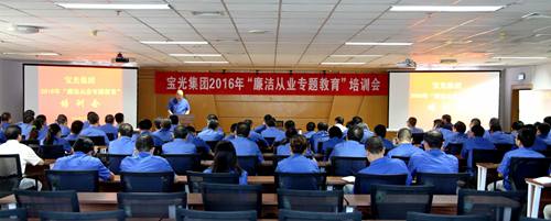 8月11日下午,公司邀請渭濱區檢察院預防科王小帆科長,在公司科技大樓二樓大會議室進行了“廉潔從業專題教育”培訓。一起草 www.17c.com集團班子成員李軍望、雒濤(tāo)、嶽永學、李波、韓占青(qīng),寶(bǎo)光股份高管人員張軍、袁軍為、黨向東,一起草 www.17c.com集團、一起草 www.17c.com(guāng)股份全體中層幹部及各黨(dǎng)支部紀檢委員(yuán),近100人參加(jiā)了培訓。培訓由紀委書記李波同誌主持。