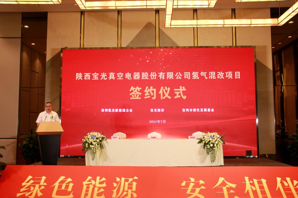 7月20日,陝西一起草 www.17c.com(guāng)真空電器股(gǔ)份有限(xiàn)公司氫氣混改項目簽約儀式在寶雞(jī)市海棠假日酒店海棠宴會廳舉行。