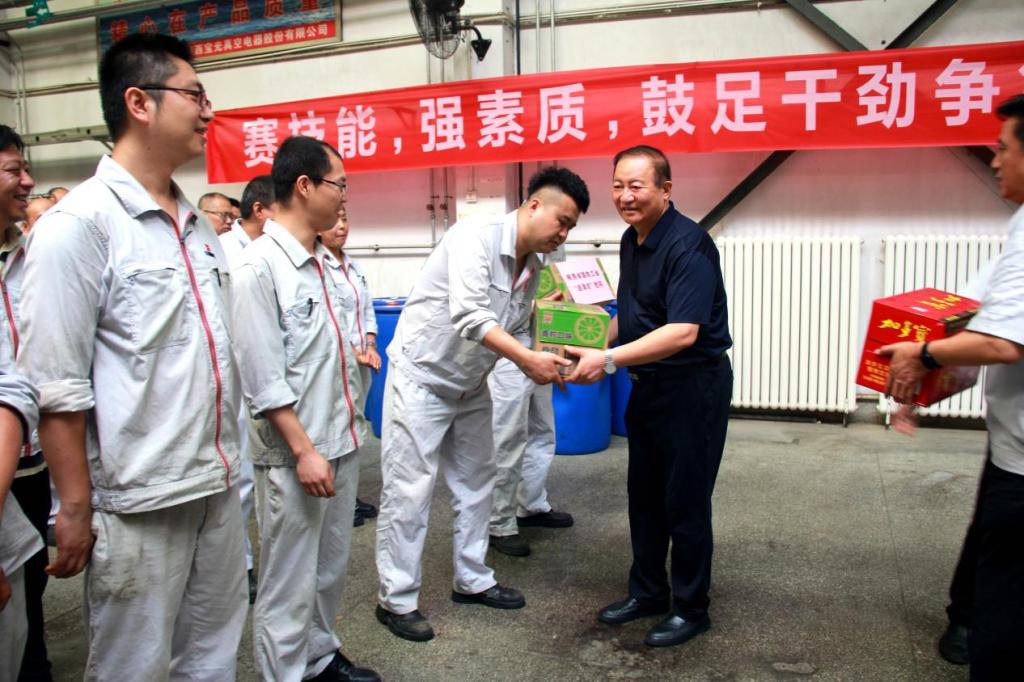 吳主席一行先後來到滅弧室產品製造部、零件產品製造(zào)部(bù)、精工電(diàn)器公司,向奮戰在一線的職工送去脈動、加多寶等清涼飲(yǐn)料,並叮囑大家在完成生產任務的同時,要注意防(fáng)暑降溫,注意休(xiū)息,勞逸(yì)結合,增強自(zì)身防護意(yì)識,做好自身勞動防護。