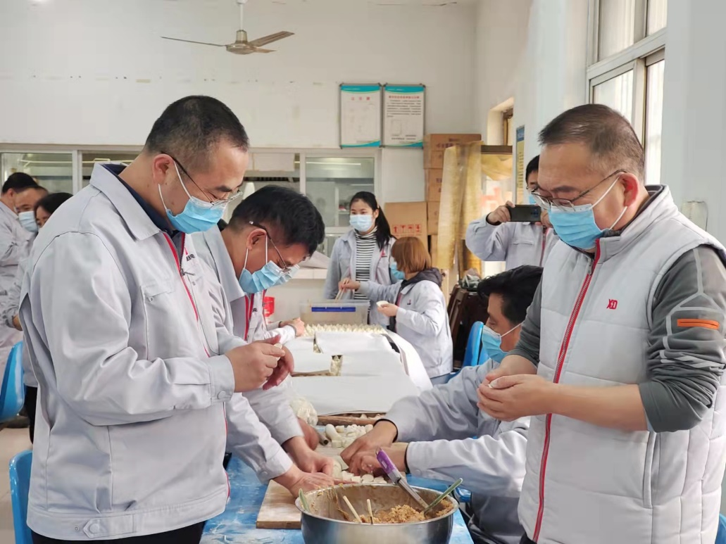 公司駐廠領導、一些幹部職(zhí)工緊張忙碌起來,有的擀有的包,場麵溫馨感人,元寶形、月牙形,不同形(xíng)狀的餃子整齊地(dì)排列在一起足有一萬多隻,不僅分擔了後勤保障(zhàng)人員的工作壓力,還用(yòng)實際行動彰(zhāng)顯著嚴肅活潑的工作作風和凝聚奮進(jìn)的精神品(pǐn)質(zhì)。好吃(chī)不(bú)過餃子,溫暖不過集(jí)體。在這個特殊時期(qī)能吃到手工水餃令人難忘,雖然(rán)暫時不能和家人、親友團聚,但大家相互關心、相互鼓勵讓每(měi)位員工(gōng)感受到(dào)了大家庭的溫暖,心底湧起(qǐ)一股股暖(nuǎn)流。