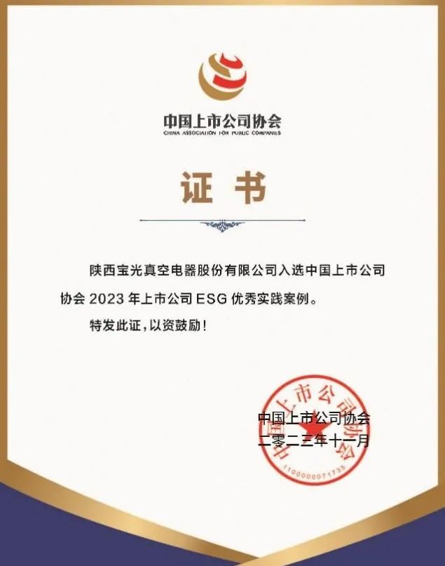 後續,中國上市公司協會將匯編形成《中國上市公司ESG最佳實踐案例2023》在可持續發展大(dà)會上發布。獲評優秀ESG實踐案例,充分(fèn)展現了寶(bǎo)光(guāng)股份在完善ESG治理體係、貫徹綠色發展理念、履行社會(huì)責任等方(fāng)麵的優秀做法。