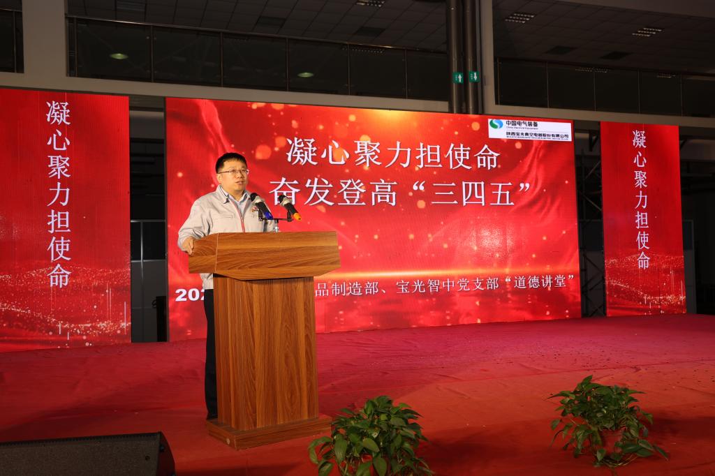 為(wéi)提(tí)升(shēng)廣大職工思想道德修養,紮實(shí)推進企業精神文明建設,進一步(bù)激發廣大幹部職(zhí)工齊心協力、幹事(shì)創業(yè)、勇拓新局的信心和決心,以優異成績完成“十(shí)四五”登高目標,12月8日下午,由寶(bǎo)光股份黨委主辦,滅弧室產品製造部黨支部、一起草 www.17c.com(guāng)智中公司黨支部聯合承辦的“凝心聚力擔使命,奮發登高‘三四五’”道德講堂活動順(shùn)利舉行。寶(bǎo)光股份黨委書記、董事長謝洪濤,寶(bǎo)光股份(fèn)黨委副書記、總經理劉壯出席會議並作點評講話。
