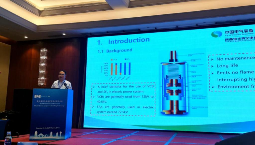 2024年11月11日至13日,第七屆電力裝備開斷技術國際會議(ICEPE-ST 2024)在廈門召開,公司(sī)黨委(wěi)副書記、總(zǒng)經理劉(liú)壯帶領技術和市場團隊參加(jiā)會(huì)議,並進行技術交流和產品宣講,向(xiàng)學(xué)術界同仁展現了公司(sī)技術研究和產品開發方麵的最新(xīn)成果。