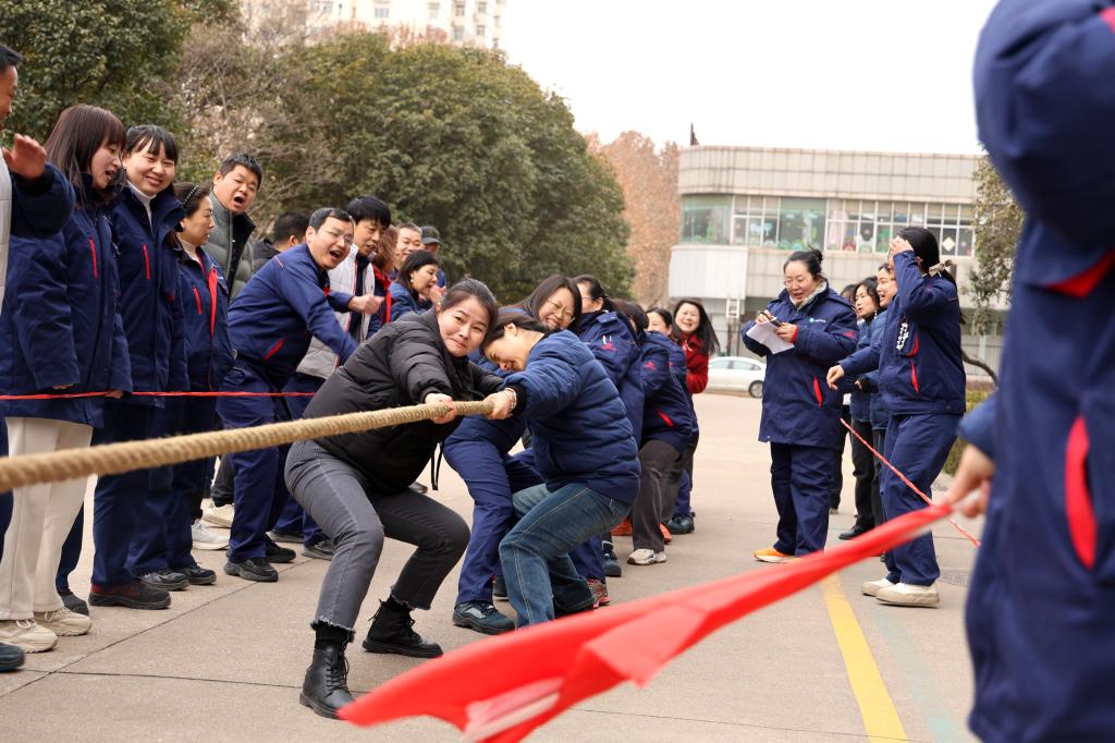 力拔千鈞展豪情,繩牽眾誌啟新程。此次拔河比賽分為男子組和女子組。比賽現場,各個隊伍都嚴陣以待,摩拳擦掌,躍躍(yuè)欲試,眼神中透露出堅定的決心和誌在必得的信念。隨著裁判的(de)一聲哨響,比賽正式拉開帷幕。刹那間,雙方(fāng)隊員爆發出驚人(rén)的(de)力量,雙手緊緊拽(zhuài)住繩子,身體拚命後仰,迸發出無(wú)盡能量。繩子中間的紅色標記在(zài)兩隊之間來回移動(dòng),每一次小(xiǎo)小的偏移都(dōu)牽動著場內外的心。場外啦啦隊和(hé)觀眾扯著嗓子喊(hǎn)著號子為自己的隊員加油助威,加油聲、呐(nà)喊(hǎn)聲、歡笑聲此起(qǐ)彼伏,熱鬧(nào)非凡。