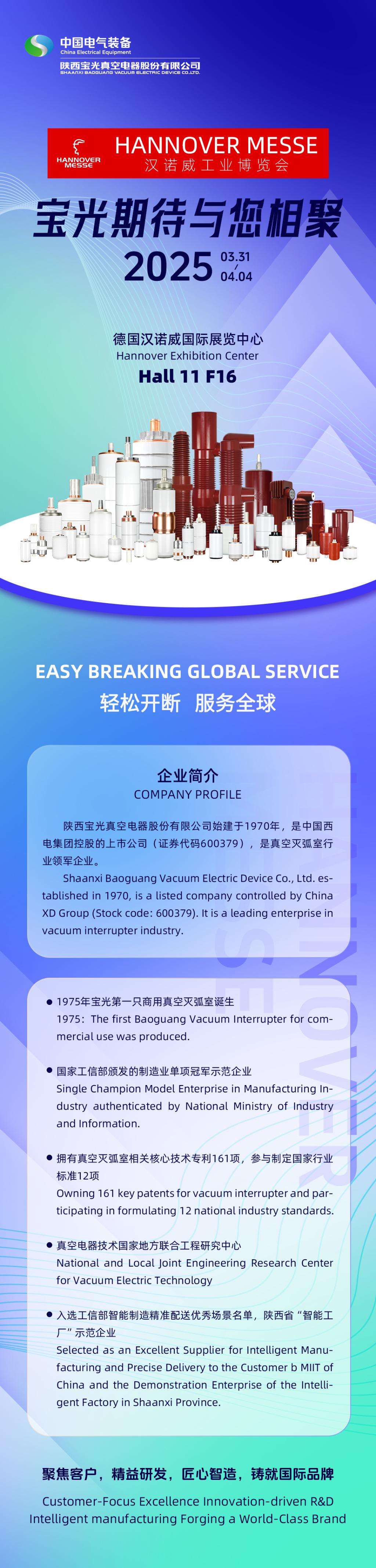 2025 漢諾威工業博覽會 (HANNOVER MESSE 2025) 將於3月31日——4月4日在(zài)德國漢(hàn)諾威展覽中心舉行。作為全球首(shǒu)屈一指的(de)工業貿易(yì)展覽(lǎn)會,本屆展(zhǎn)覽會以“為工業可持續發(fā)展注(zhù)入活力”為主題,重點關注“人(rén)工智能在工業領域的應用”,展示行業卓越的創新(xīn)和開(kāi)創性(xìng)產品及解(jiě)決方(fāng)案。