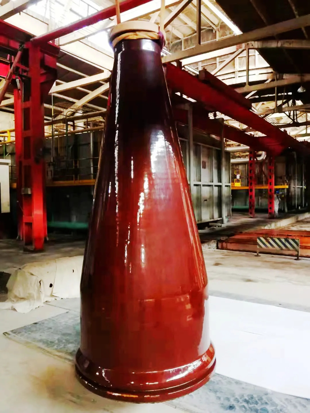 本次研製的2000kV變壓器電容套管將應用於目前世界上電壓等級最高的試驗變壓器,對1100kV特高壓電氣設備(bèi)產品進行各項(xiàng)嚴格的電氣性能(néng)試驗。這種試驗方法屬於國內首次,相比常規產品,試驗要求及質量控(kòng)製更加苛刻。同時,該產品為超大尺寸、薄壁、錐度大、易變形的(de)炮彈式結構(gòu),僅毛坯重量就接(jiē)近8噸,整個製造(zào)過程采用濕法產線生產,因突破了很(hěn)多設備的極(jí)限,成型極其困難。在毛坯擠製、轉運、陰(yīn)幹、修坯、幹燥、上釉、燒成、切(qiē)割研磨各工序,均存在不同(tóng)程度困(kùn)難與(yǔ)挑戰。