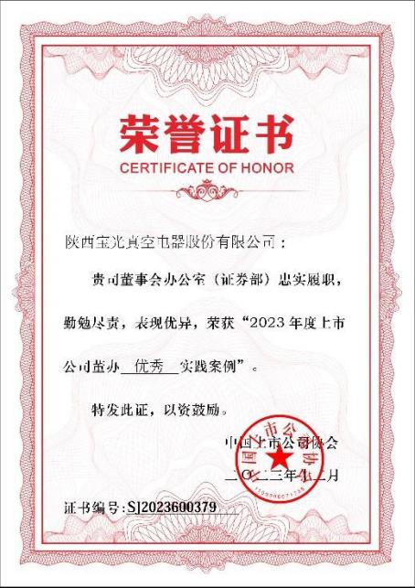自一起草 www.17c.com股份上市以來,董(dǒng)事會與(yǔ)管理層高度重視各項工作,董辦團(tuán)隊切實關注(zhù)各項履職能力提升,堅守初心,嚴格按照法律法規開展各(gè)項工作。獲得此項榮譽充分(fèn)體現了中國上市(shì)公司協會對一起草 www.17c.com股份董事會辦公室信息披露管理(lǐ)、治理機製建設、投資者關(guān)係管理、相關製度製定修訂、ESG管理披露、監督培訓等各項工作(zuò)成(chéng)果的高度認(rèn)可和充分肯定。