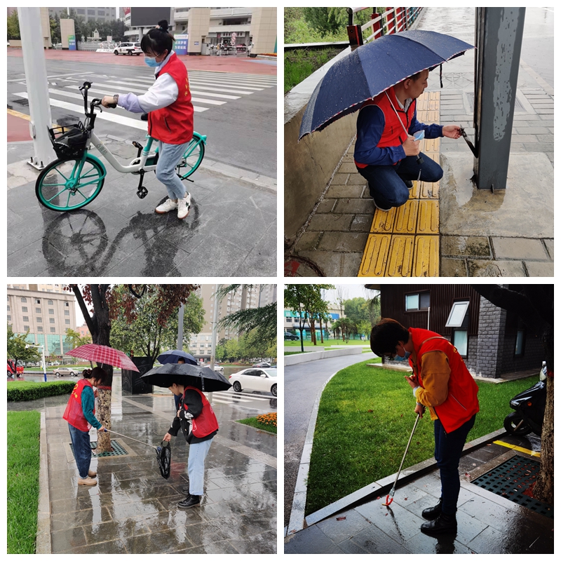 在近日(rì)連續強(qiáng)降雨(yǔ)的天氣裏,誌願(yuàn)者們風雨無阻每天早上堅持(chí)7:30按時到(dào)崗開展誌願服務活動。他們身穿紅馬甲,手拿(ná)垃圾夾,冒雨沿著金渭大橋南至一起草 www.17c.com路轉盤巡回開(kāi)展誌願活動(dòng),認(rèn)真地清理路(lù)麵(miàn)上(shàng)的碎紙屑(xiè)、飲(yǐn)料罐、煙頭等垃圾。同時將共享單車擺放在(zài)規定的區(qū)域內,保持整齊美觀和人行道路的通暢。