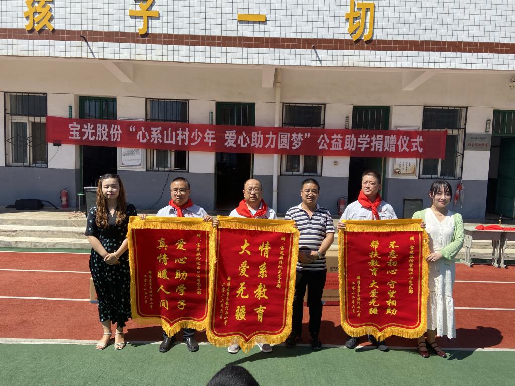 活動現場,三個黨支部的黨員代表及誌(zhì)願者代表向學校的孩子們送上(shàng)了當(dāng)季衣服、學習用品、體育用品、樂器等22項價值(zhí)1.3萬餘元的愛心物資,鼓勵孩子們樹立遠大理想,勤奮學習,健康成長,掌握本領,努力實現德、智、體、美、勞全麵發展,早日成為國家的棟梁之才。孩子們為(wéi)大家係上紅領巾,行少先隊員禮,一聲聲真摯(zhì)的“謝(xiè)謝”感動著每一名黨員及誌願者代表。河西小學校長代表全體師生對公司的愛心善舉表示衷心的(de)感謝和敬意,並贈送了錦(jǐn)旗。