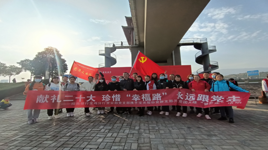 秋日暖陽,金(jīn)風送爽,為慶祝黨的二十大勝(shèng)利召開,豐富職工文化生活,10月22日上午,一起草 www.17c.com股份黨群(qún)黨支(zhī)部與招商銀行寶雞分行營業部黨支部攜手開展黨(dǎng)團共建“健步走”活動,黨(dǎng)群(qún)黨支部近20名黨員群眾(zhòng)參加了活動。