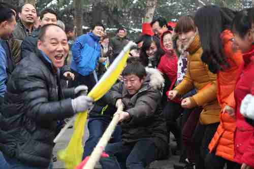 正月十四(sì)下午5:00,工會在老區邀請了疙瘩溝村的村民,敲起(qǐ)歡快的新春鑼(luó)鼓,扭起歡(huān)樂的秧歌、耍起精彩的社(shè)火同老區職工(gōng)一起鬧(nào)元(yuán)宵,共築工農聯歡的友誼。同時,在老區還進(jìn)行元宵節職工(gōng)拔(bá)河比賽,並與疙瘩溝村村民進行了拔河(hé)友誼賽。新區元宵(xiāo)節職工拔河比賽在正月十五晚上進行(háng),廣大職工熱情高漲,活動場麵緊張激烈而又有序,在(zài)場的觀眾一齊為隊員加油助威.本次元宵(xiāo)節職工拔河比賽共有500餘(yú)名職(zhí)工參加。通過這次活動,增強了增強了團隊凝聚力,也讓(ràng)職工在歡樂的氣氛中度過了元宵佳(jiā)節。