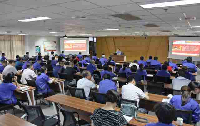 為加強黨(dǎng)員對新黨章及十九大精神的理解(jiě),推動黨的十九大精(jīng)神(shén)進車(chē)間、進班組活動持續深入,使廣大黨員幹(gàn)部職工深刻領會十九大精神(shén)的豐富內涵,學會用(yòng)習近平新時代中國(guó)特色社會主義思想指(zhǐ)導工作,6月6日19:30時,公司(sī)紀委書記、工會主席(xí)付宗喜同誌在科技大樓(lóu)二樓大會議室講授了以“學習新黨章不斷提升黨性修養”為(wéi)主題的專題黨課。公司工會委(wěi)員會委員、各分會主席,團委委員、各團支(zhī)部書(shū)記(jì),以及黨群黨支部(bù)和零件產品製造部黨支部黨員共90餘(yú)人聆聽(tīng)了專題(tí)黨課。