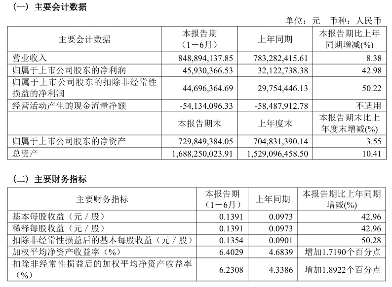 寶(bǎo)光股份2024年半年度主要財務指(zhǐ)標