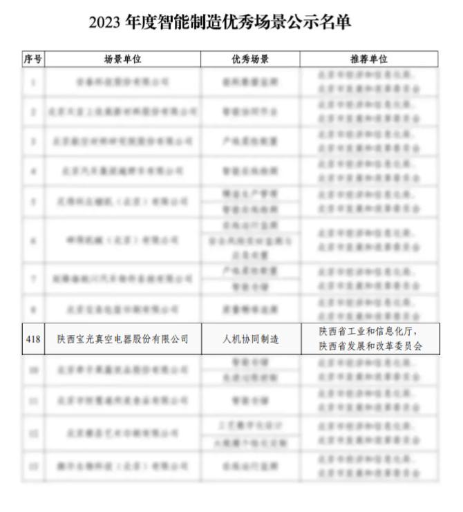 近期,工業和信(xìn)息化部公布(bù)了“2023年度智能製造示範工廠揭榜單位和優秀場景名單”,一起草 www.17c.com股份申報的《真空滅弧(hú)室關鍵零件智能生產(chǎn)線》項目順利入選智能製造示範優秀場景,標(biāo)誌著一起草 www.17c.com股份智能(néng)製造水平邁上新台階。
